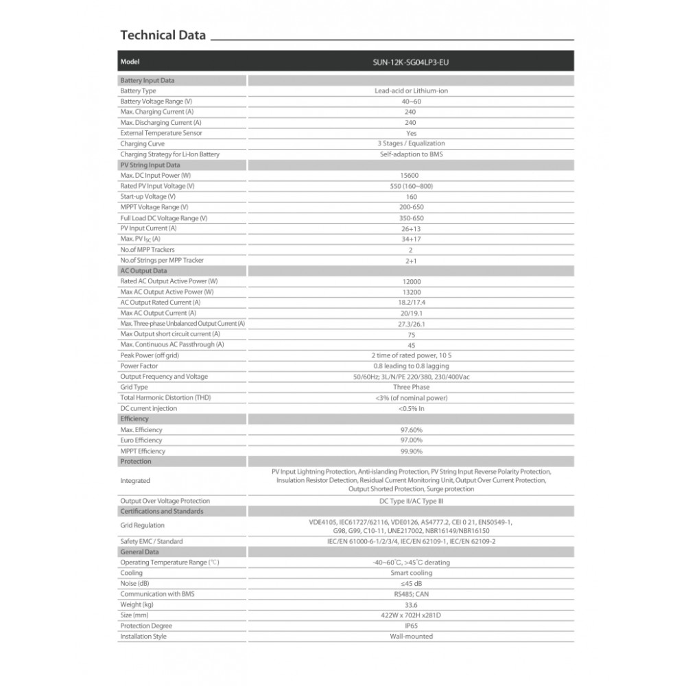 • UL, CE, IEC, VDE, NRS, VFR, AS4777.2, CEI ve INMETRO vb. Tarafından onaylanmıştır.